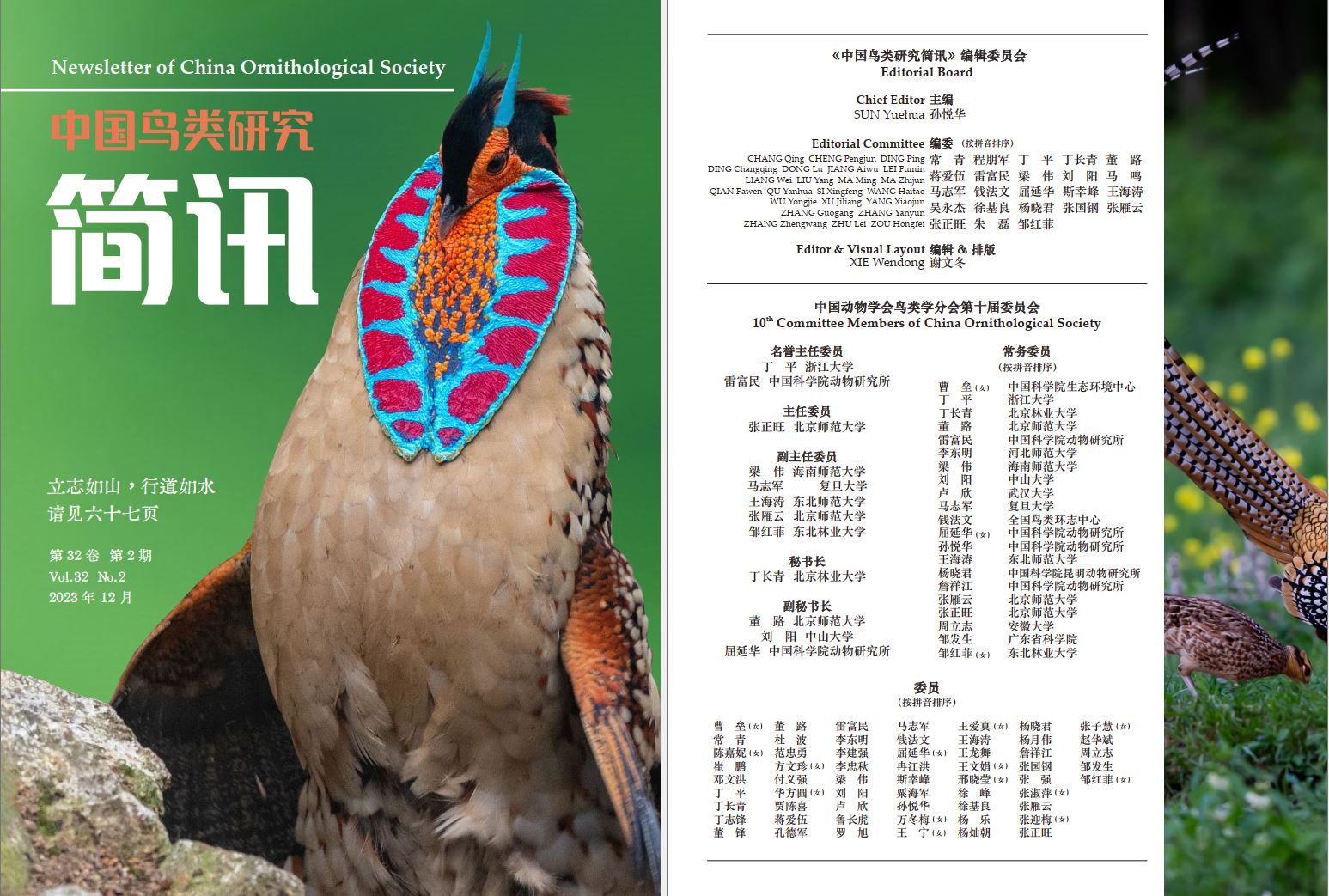 本期主要内容包括对国内外鸟类学相关的大事、新闻进行汇总,有对2023年中国鸟类学大会的报道、国际鸡形目学术研讨会等会议的报道,以及今年即将举办的第二届亚洲鸟类学大会的通知。想要参加会议的老师、同学们一定不要错过。本期还包括对2023年下半年至今鸟类学领域发表的一系列成果报道,有“鸟兽同穴”行为的机制分析,也有寺庙对鸟类多样性保护作用的探寻等。